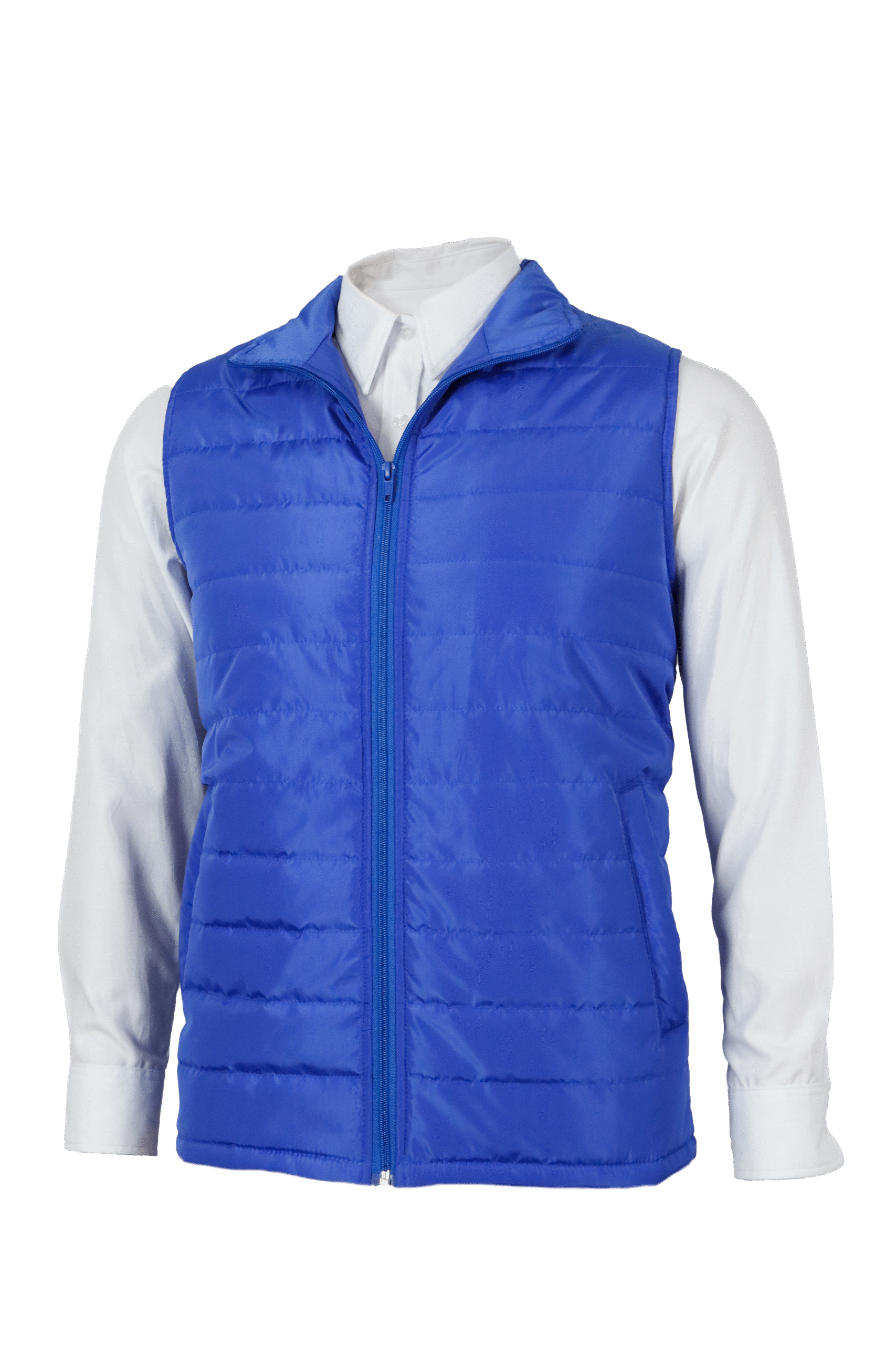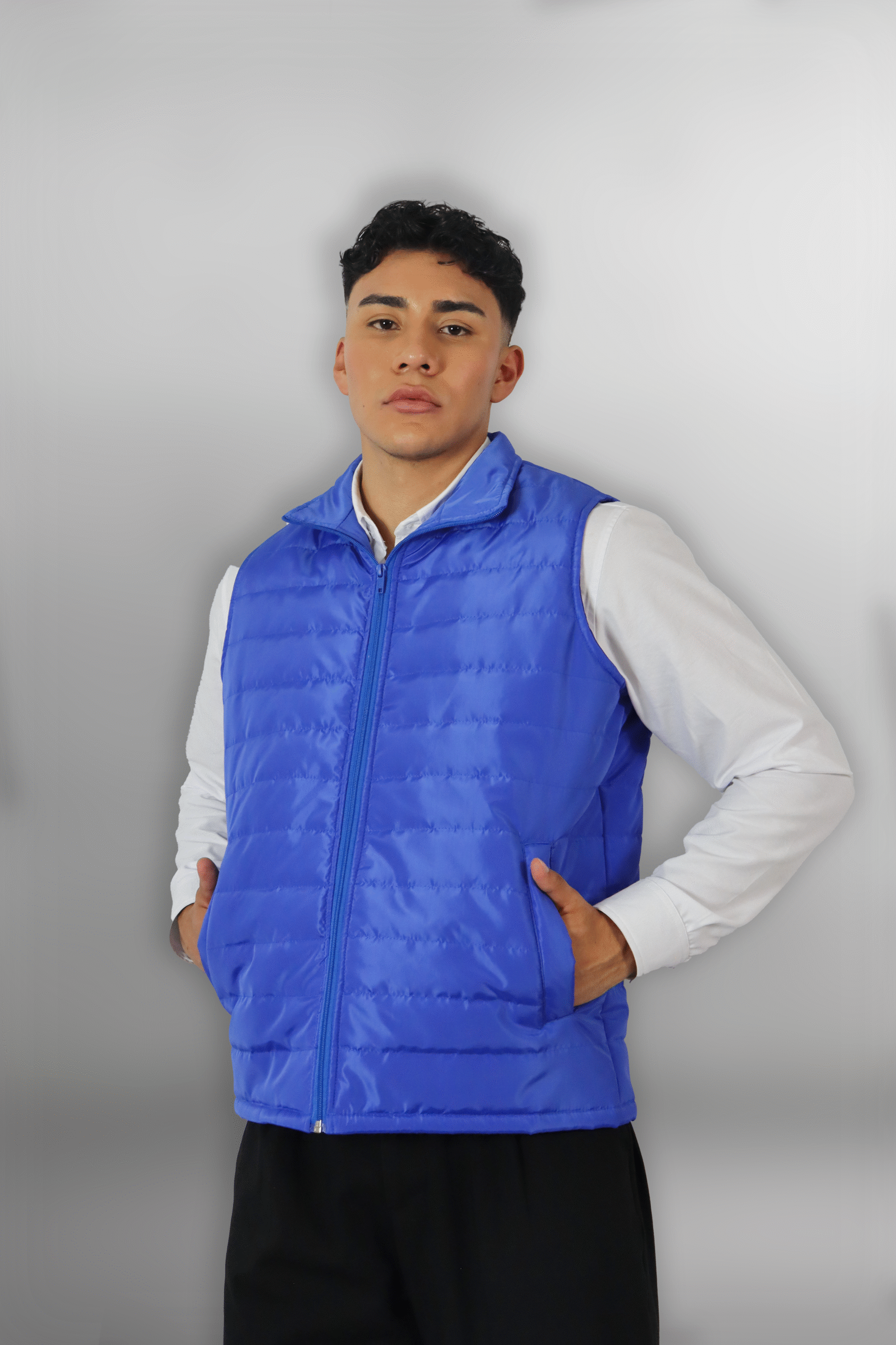 Chaleco acolchado unisex, confeccionado en 100% poliéster, ligero y cómodo. Su diseño con cierre frontal y bolsas laterales lo hace práctico y funcional, ideal para dama y caballero.