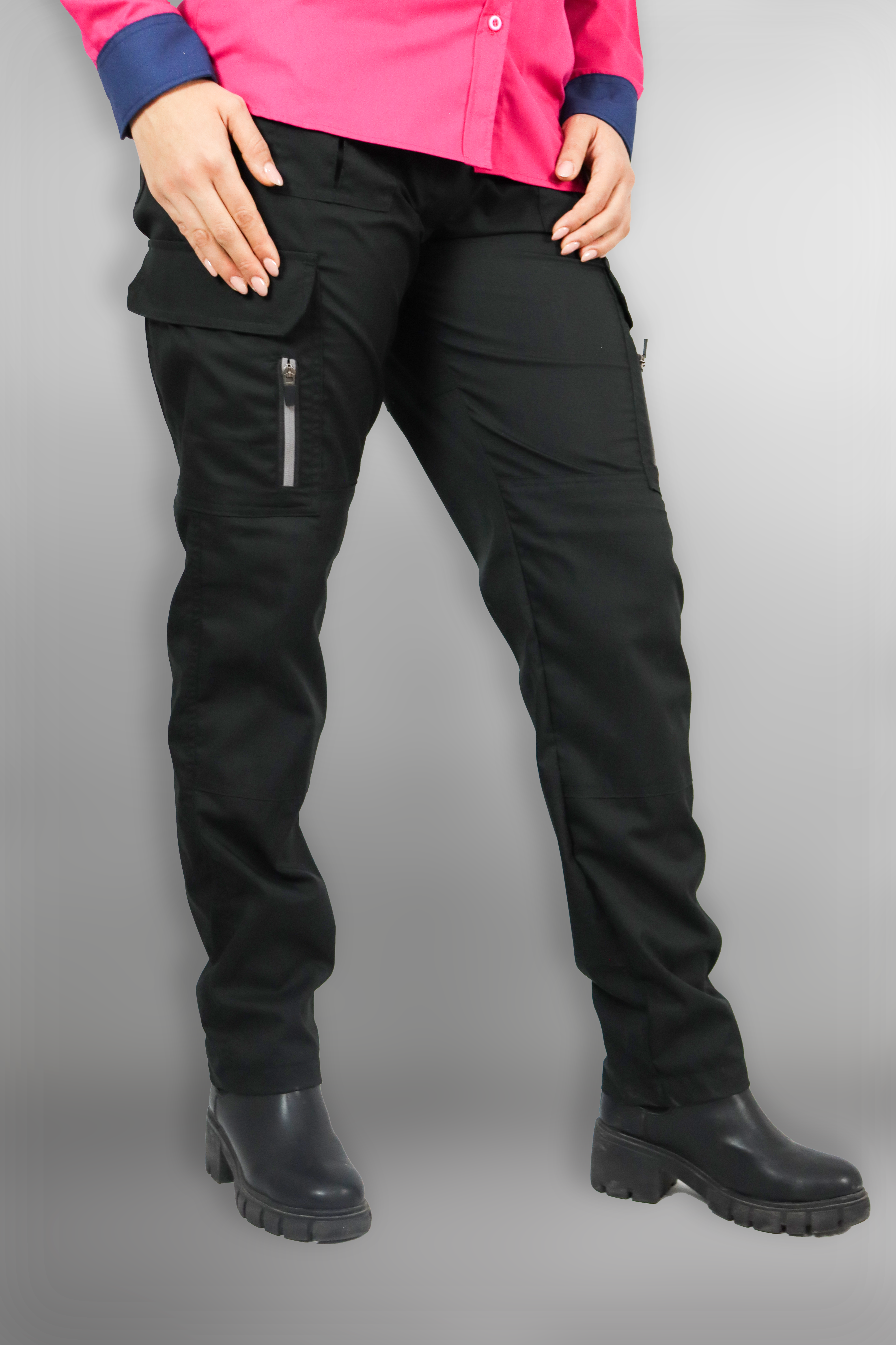 Pantalón cargo con múltiples bolsillos reforzados y cierres reflectantes para mayor seguridad. Está confeccionado con un 65% poliéster y un 35% algodón, ofreciendo resistencia y comodidad. Su corte está diseñado tanto para dama como para caballero, proporcionando funcionalidad y estilo en cualquier ambiente.
