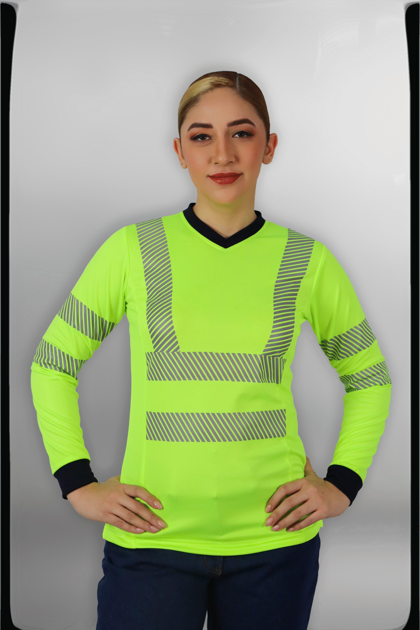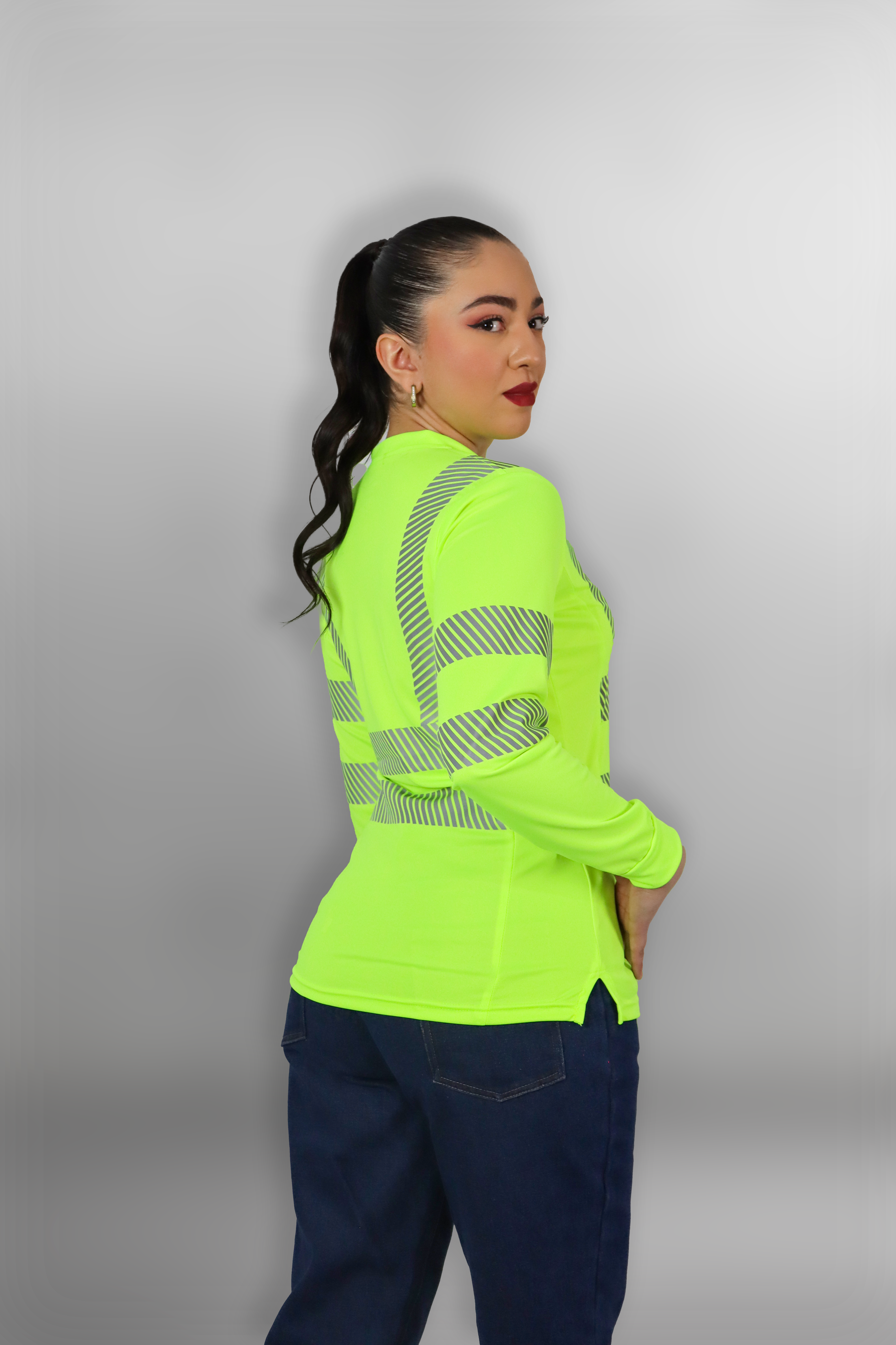 Playera de manga larga unisex (corte para dama y caballero), confeccionada en 100% poliéster de alta durabilidad. Cuenta con reflejante segmentado al frente, espalda y mangas, brindando alta visibilidad y confort. Ideal para trabajos en exteriores o ambientes de baja iluminación.