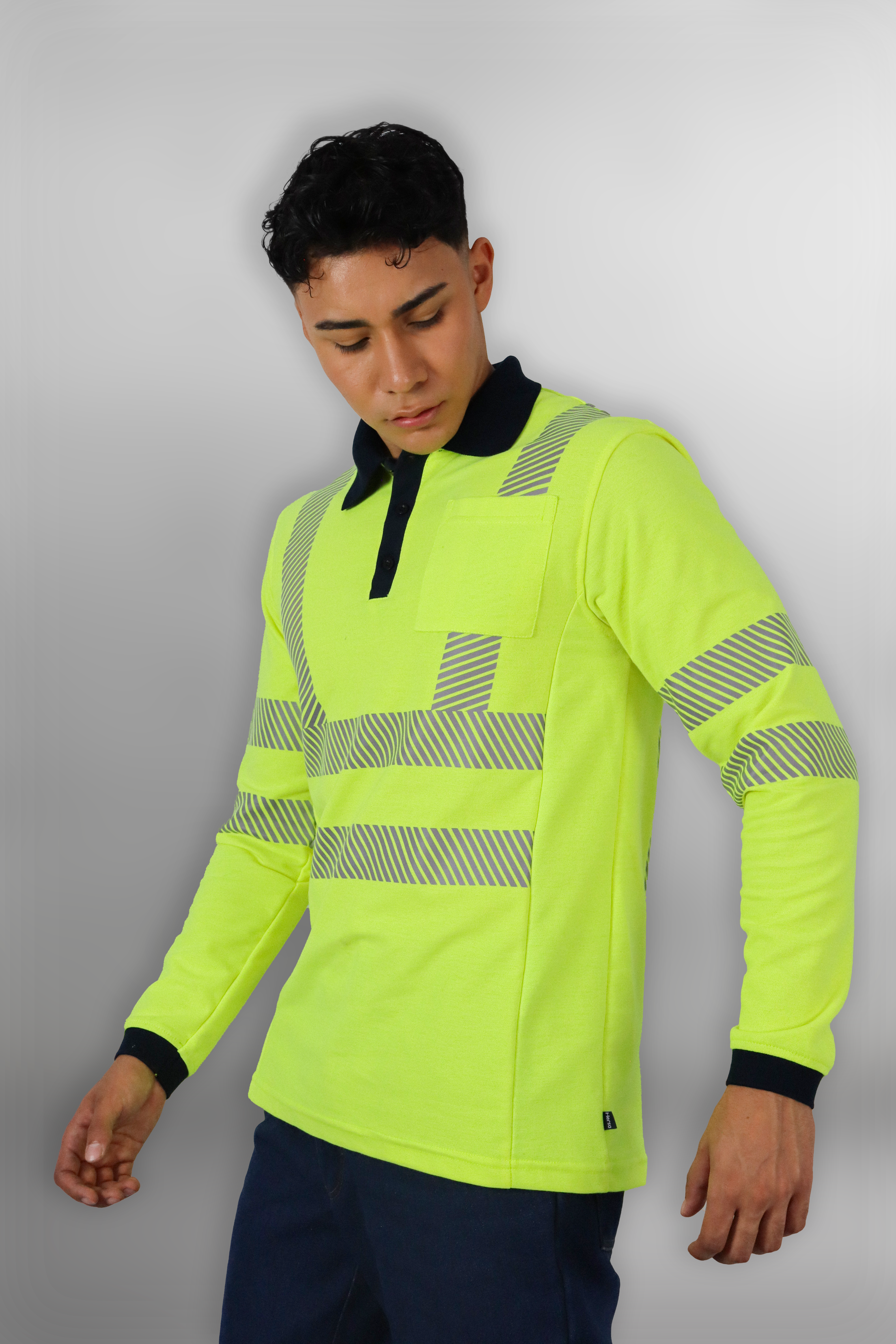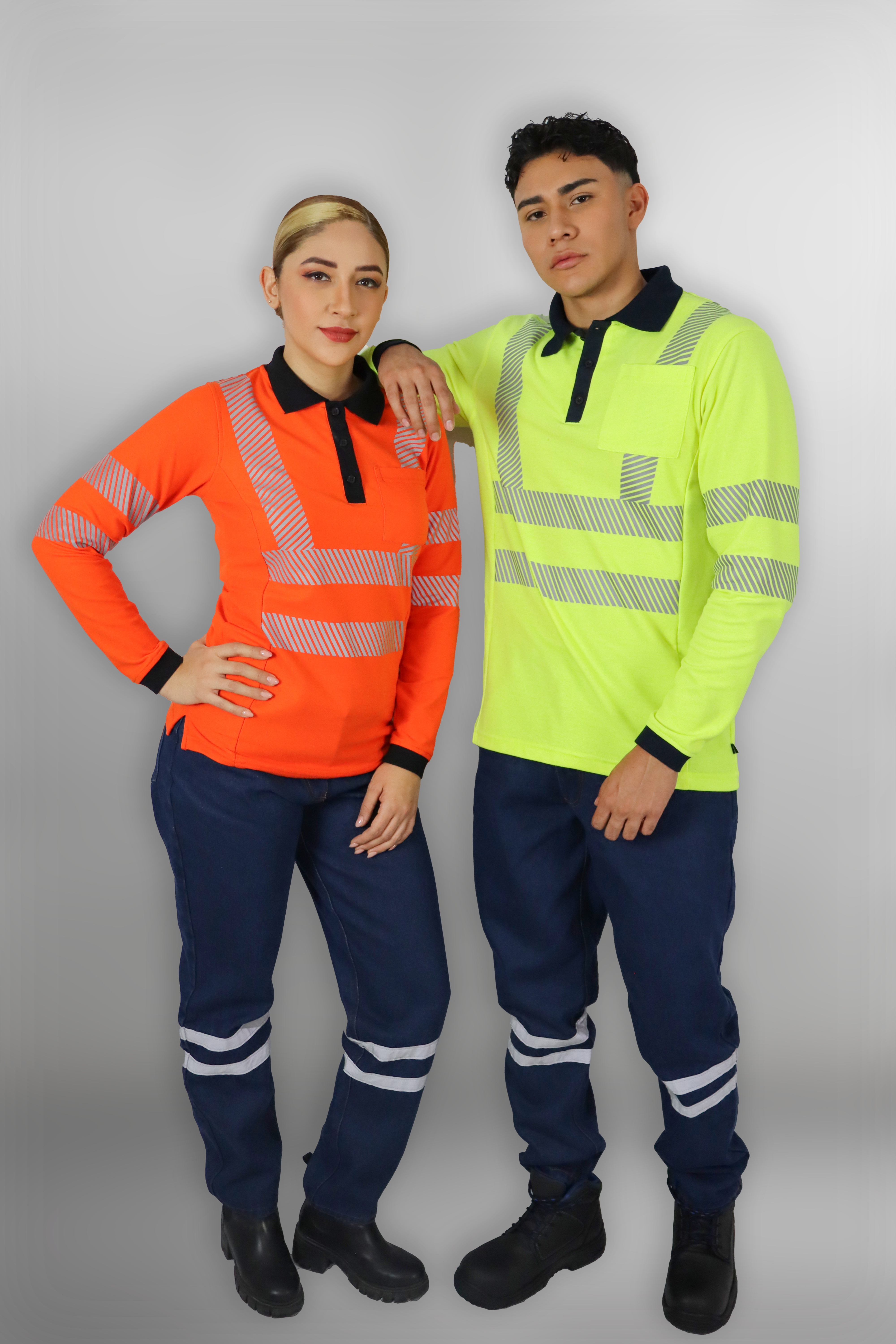 Polo de manga larga (corte para dama y caballero), confeccionado en 50% poliéster y 50% algodón, que ofrece confort y resistencia. Cuenta con reflejante segmentado para mayor visibilidad, bolsillo frontal y cuello tipo camisa. Ideal para ambientes laborales que requieren seguridad y presentación.