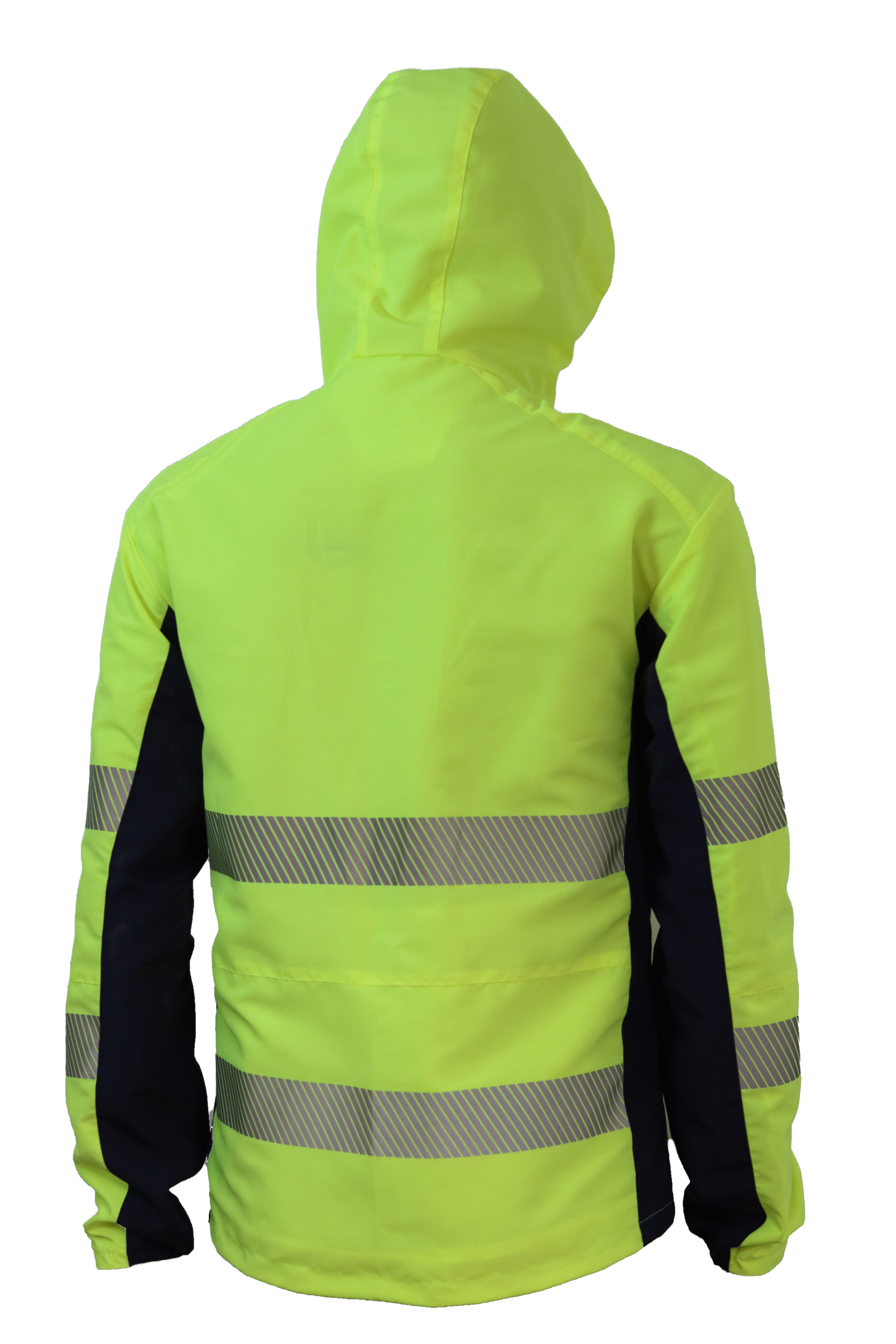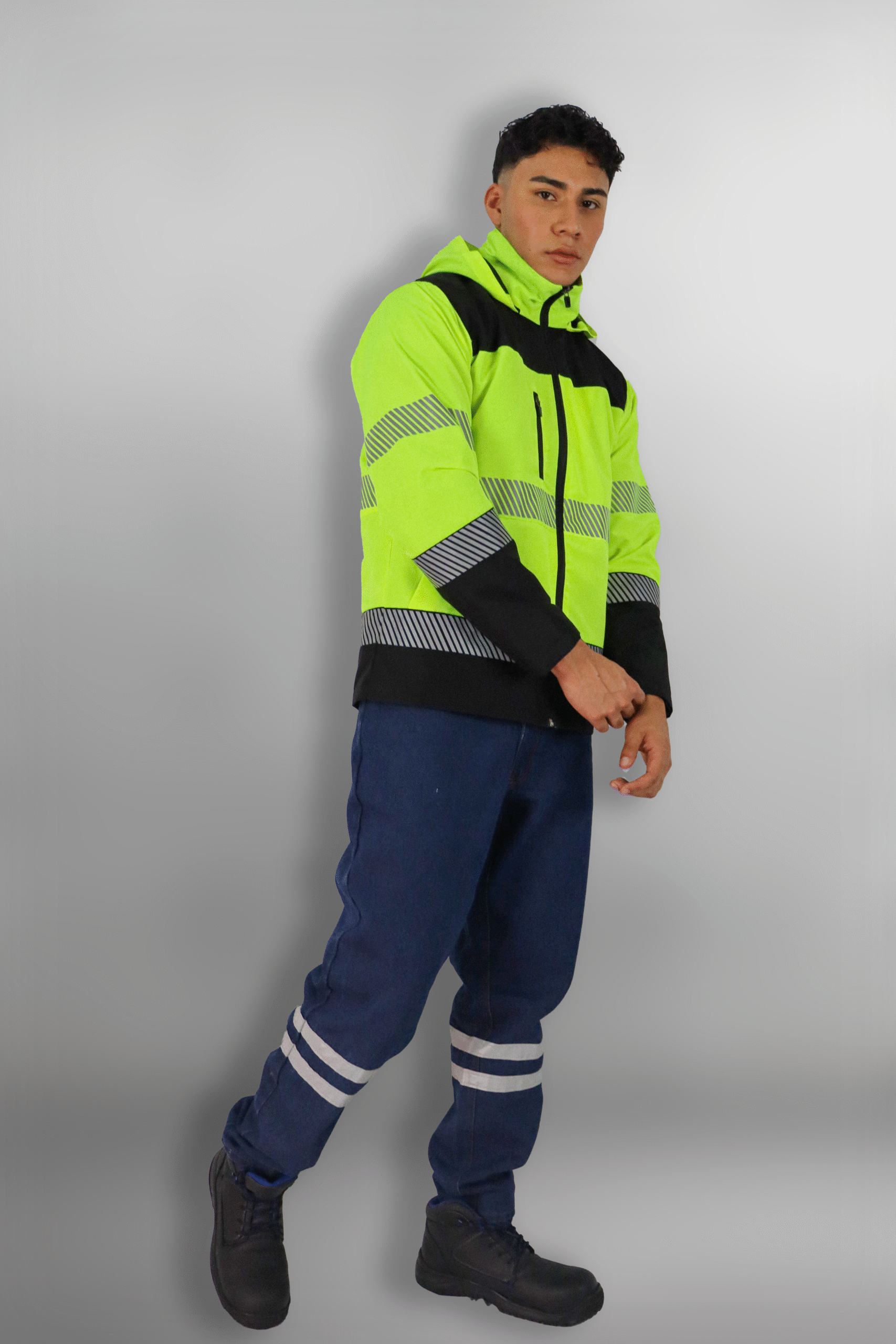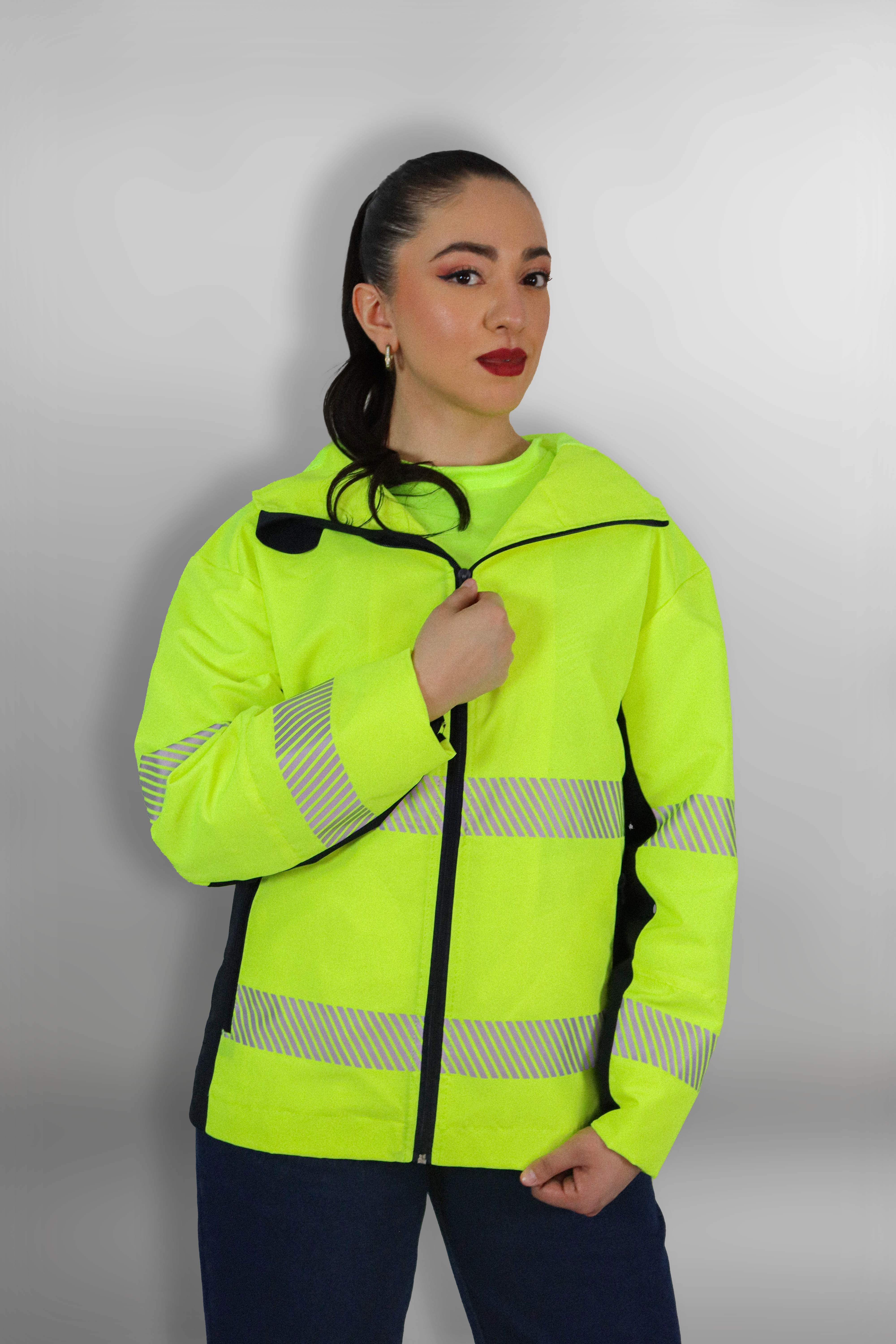Chamarra unisex impermeable, fabricada en 100% poliéster con acabado repelente al agua. Cuenta con reflejante segmentado en pecho, espalda y mangas para alta visibilidad. Diseño ligero, resistente y funcional, con cierres frontales y bolsillos. Ideal para uso en exteriores y climas lluviosos.